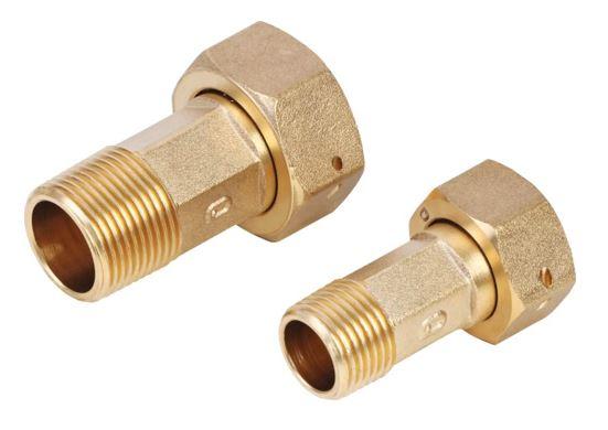 - HinweisMessingmaterial nach DIN 50930-6 zur Erfüllung der TrinkwasserverordnungIm Lieferumfang enthalten1 Satz = 2x Überwurfmutter + 2x Stutzen