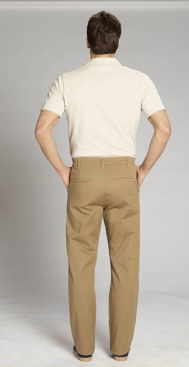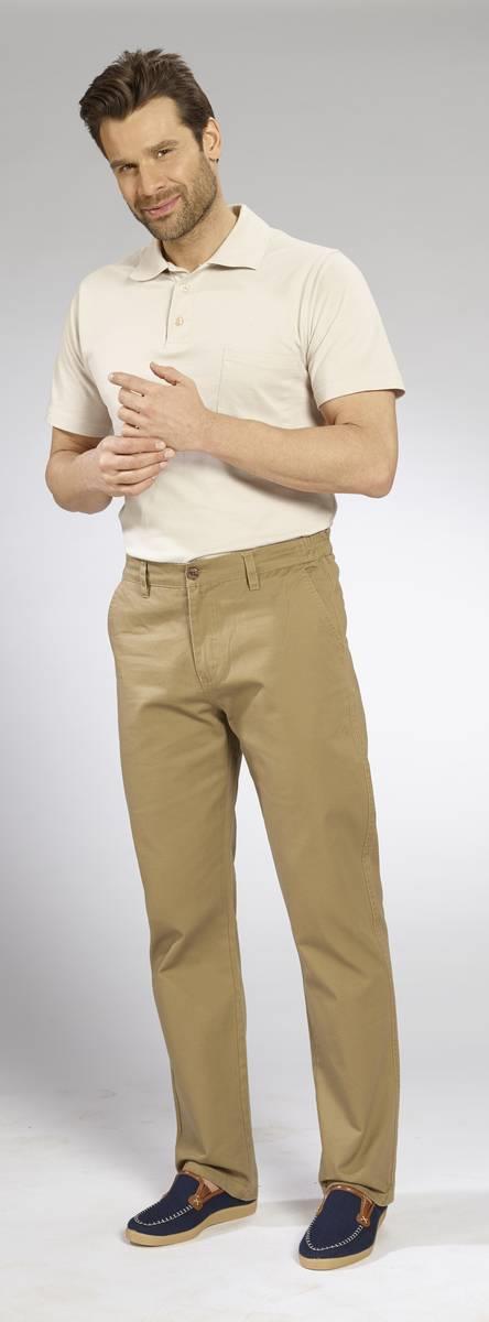 Baumwollhose mit Teil-Dehnbund, 2 Gesäßtaschen mit Reißverschluß, Farbe sand, Gr.48