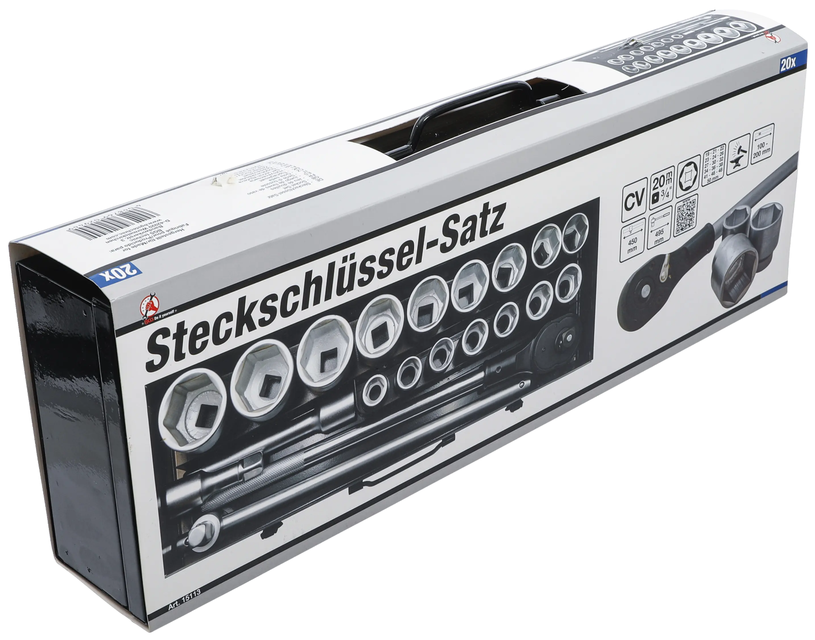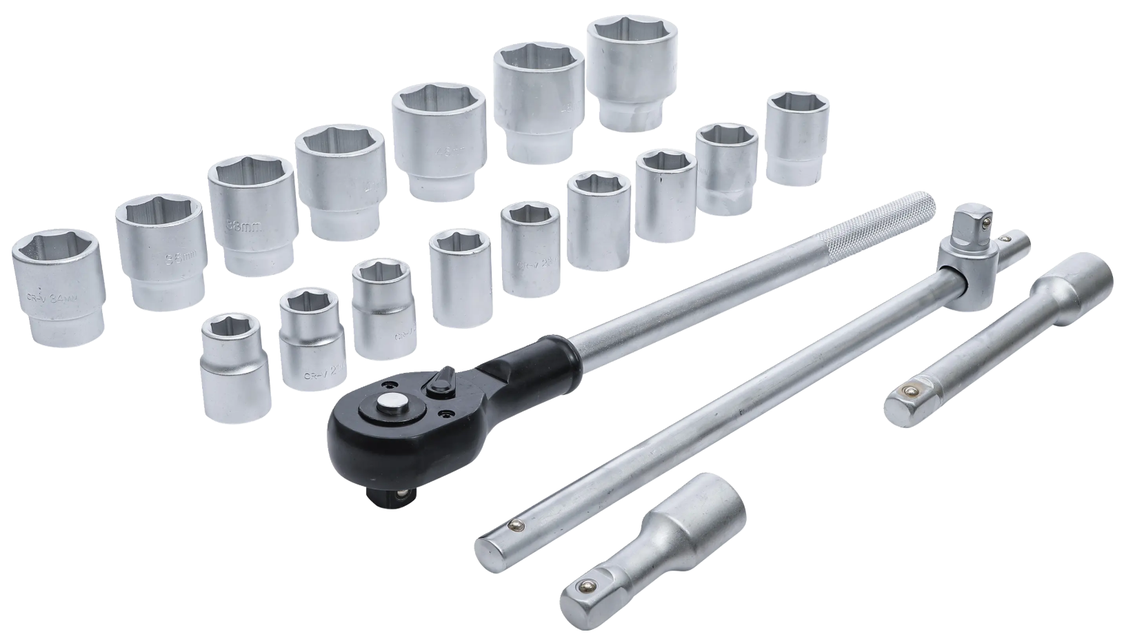 - Steckschlüssel-Einsätze, Antrieb Innenvierkant 20 mm (3/4″), Sechskant SW 19 – 21 – 22 – 23 – 24 – 26 – 27 – 30 – 32 – 34 – 36 – 38 – 41 – 46 – 48 – 50 mm