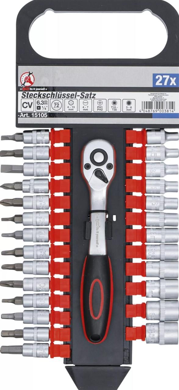 - Bit-Einsätze, Antrieb Innenvierkant 6,3 mm (1/4"), T-Profil (für Torx) T10 – T15 – T20 – T25 – T30