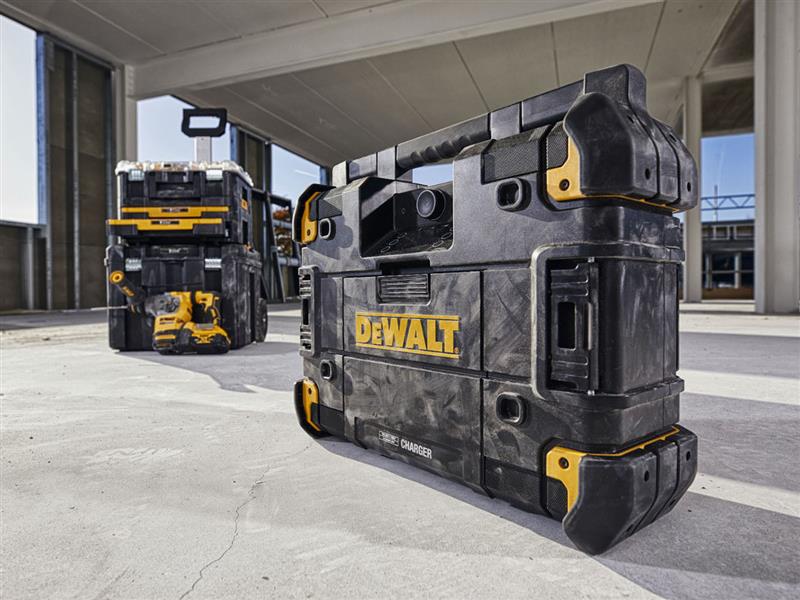 | Feature | Ladefunktion für 10,8 – 54,0 Volt XR Akkus von DeWalt, Remote Anwendung (iOS, Android), IP54, Gummistoßdämpfer | ||