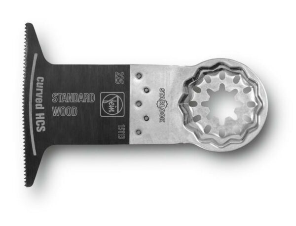 E-Cut Standard-Sägeblatt curved – Geschränkte Verzahnung für alle Holz-, Gipskarton- und Kunststoffmaterialien, hohe Schnittqualität und gute Schnittgeschwindigkeit. Gekrümmte Schneidgeometrie für optimales Eintauchverhalten und saubere präzise Schnittkanten besonders auf glatten Oberflächen. – Breite Form für maximale Schneidleistung und lange gerade Schnitte