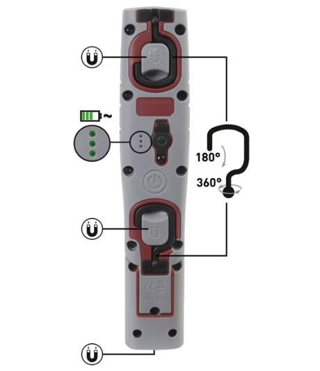Mit 3 zusätzlichen Magneten und 2 Haken ist diese Lampe ideal für die Arbeit in schlecht beleuchteten Bereichen.