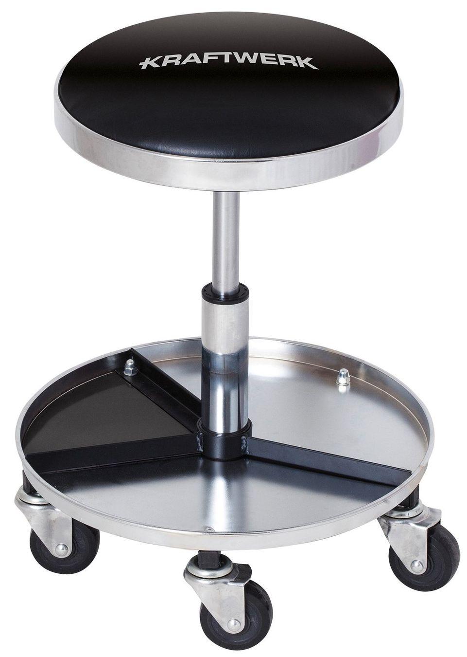 Wir bieten Ihnen den praktischen Kraftwerk Werkstatthocker mit Rollen, ideal für Werkstätten und Arbeitsbereiche. Der Hocker ist höhenverstellbar, sodass Sie stets die optimale Sitzposition finden.