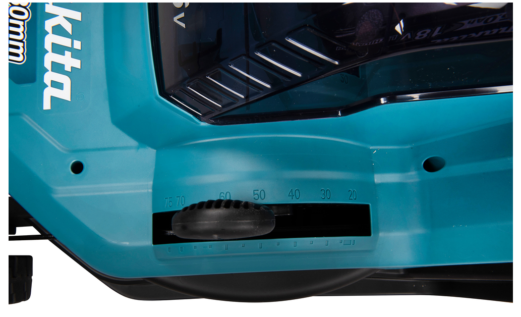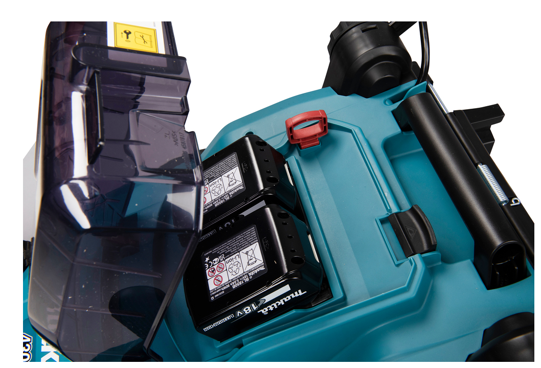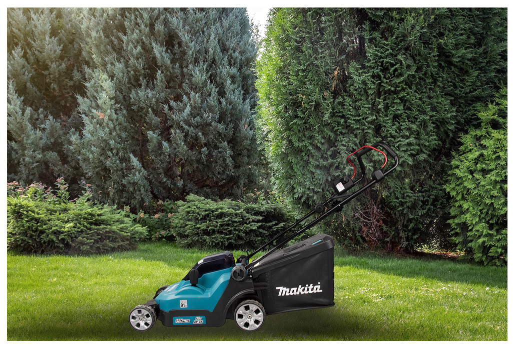 Ein leiser Akku-Rasenmäher mit einem leichten Kunststoffgehäuse. Er wird mit zwei 18-V-LXT®-Akkus betrieben, die eine Spannung von 36 V liefern. Der Rasenmäher ist einfach zu bedienen und ideal für kleine Gärten. Er bietet eine Schnittbreite von 38 cm und verfügt über einen Grasfangkorb.