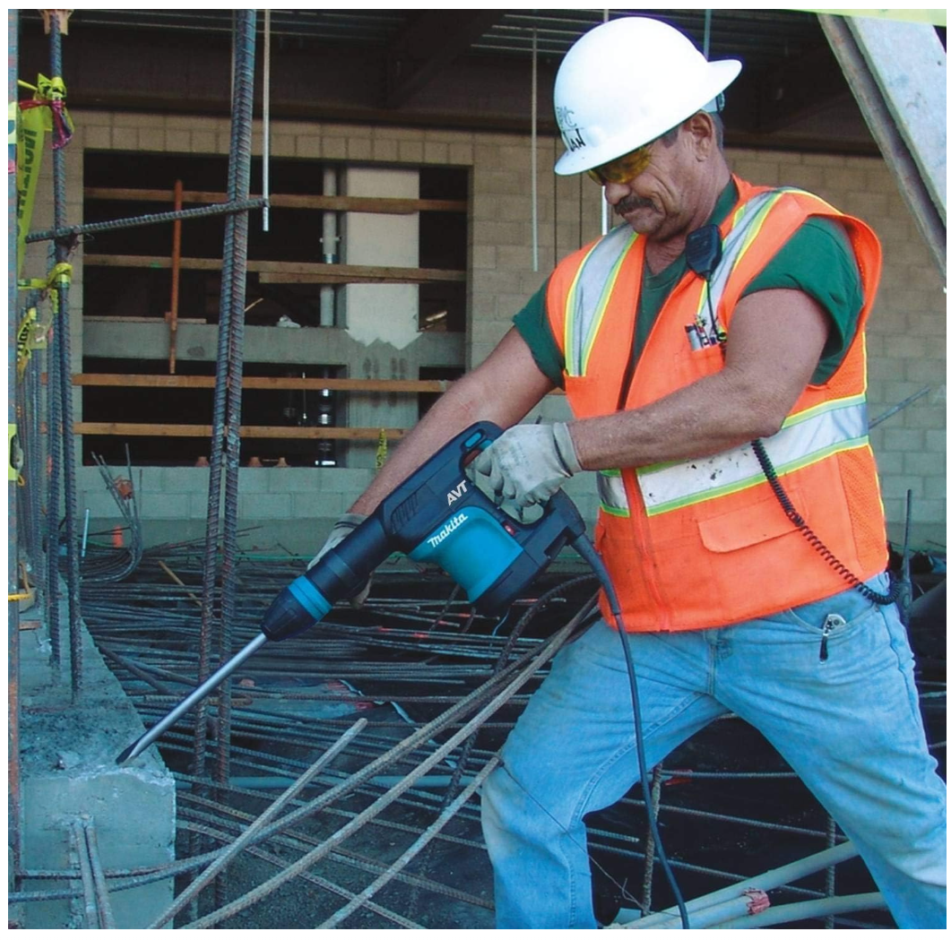 • AVT Antivibrationstechnologie, eine Makita-Exklusivität: Ein Ausgleichsgewicht absorbiert Vibrationen um mehr als 50% für einen aussergewöhnlichen Arbeitskomfort