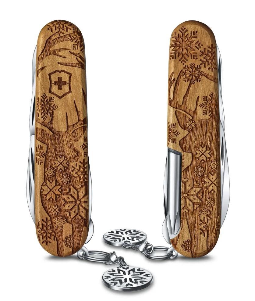 Lassen Sie sich in die magische Schneelandschaft des nordischen Winters entführen. Das Super Tinker Wood Winter Magic 2022 vereint fein gemaserte Nussbaumholzschalen mit exquisiten Gravuren und zwölf praktische Funktionen. Jedes der 10.000 Stück wird in einer nachhaltigen, halbtransparenten Geschenkschachtel, inklusive hautfreundlichem Anhänger geliefert. Liebevolle Details und ansprechendes Design machen dieses Messer zu einem begehrten Begleiter für die Hosentasche.