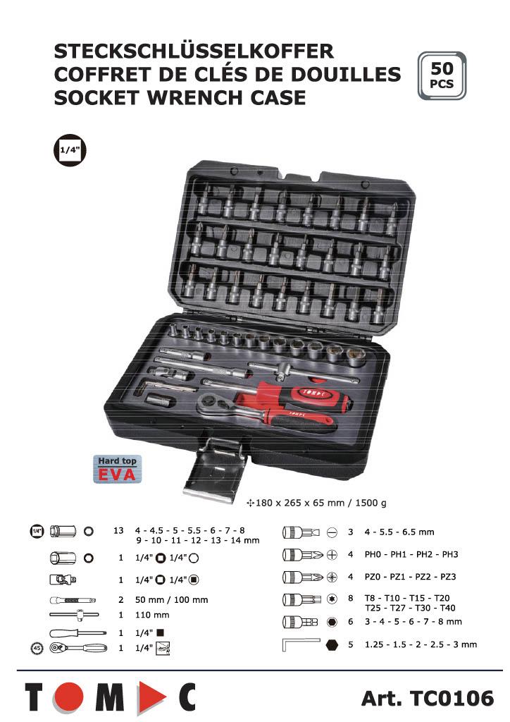 1/4″ – 50 teilig in solidem PU-Hartschalenkoffer