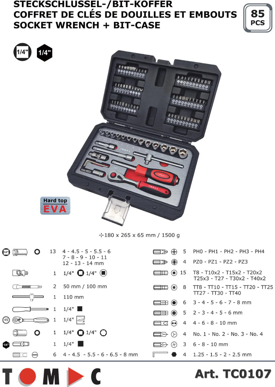 tomec TC0107 Steckschlüsselsatz, 85-teilig Aktion 49.50 statt 62.00