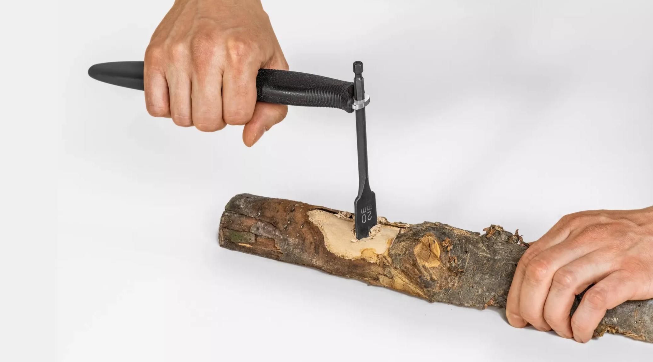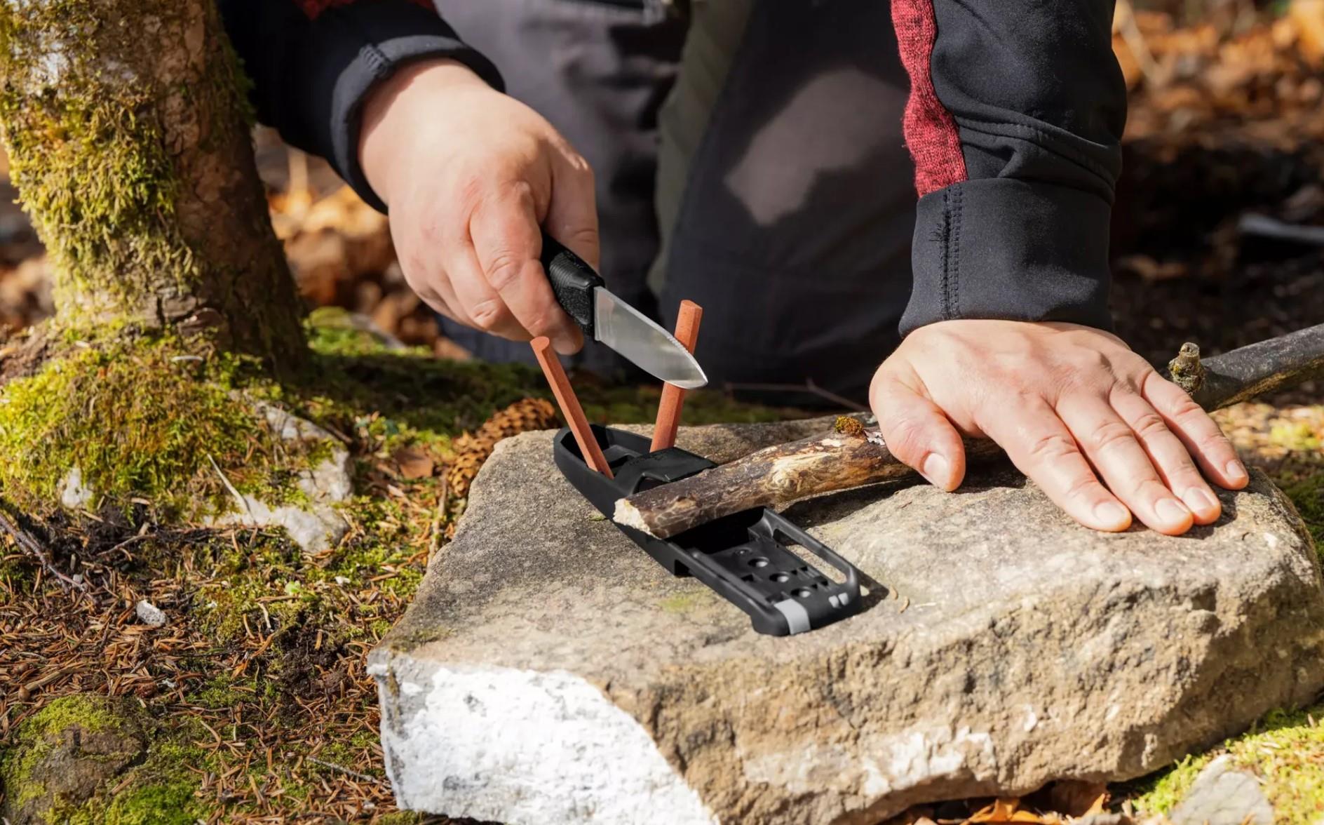 Das Venture Pro Kit mit 2 cm Flachbohrer und zwei Abziehsteinen ist ein durchdachtes Accessoire aus strapazierfähigem 600D-Polyester, das zu Ihrem Venture Pro Messer passt und für all Ihre Bushcraft-Abenteuer geeignet ist. Holzbohren und Klingenschärfen unterwegs – alles kein Problem.