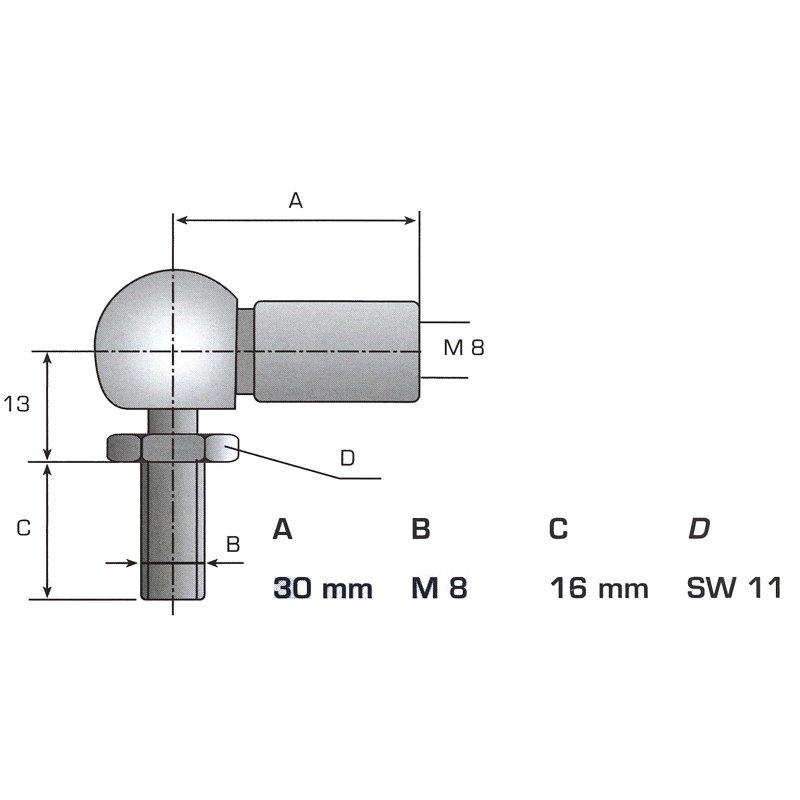 Winkelgelenk M8 aus verzinktem Stahl